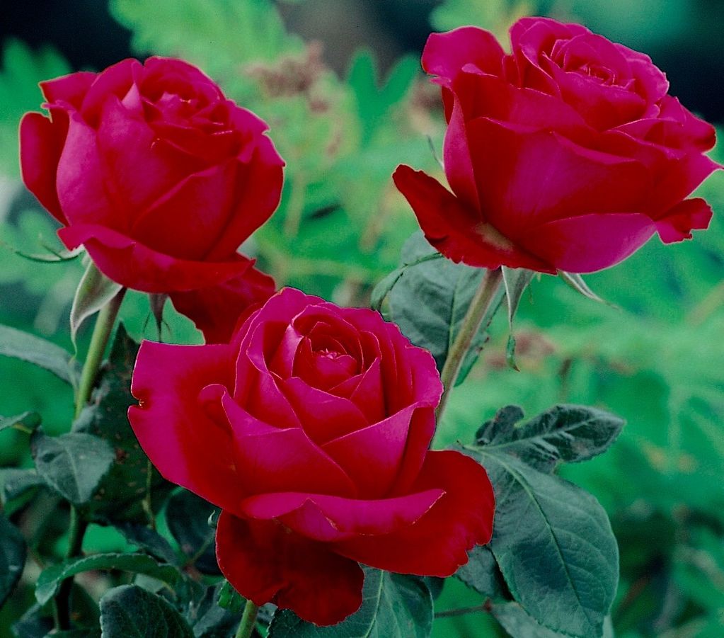 Glowing cerise pink flowers that are well formed and moderately full. Very fast repeat blooms that are excellent when cut for indoor display. The compact bush with shiny dark green foliage grows to about 1.3m and will grow well in a pot or garden.